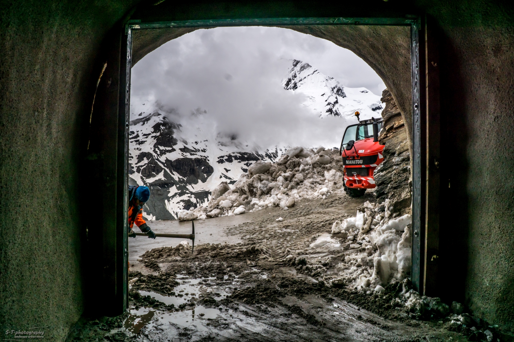 Wir liefen den Gamsgrubenweg ein bisschen, hier musste man durch verschiedene Tunnel gehen um auf den eigentlichen Wanderweg zu gelangen. Nach dem 6. und letzten Tunnel war allerdings Schluß, hier waren Arbeiter noch damit beschäftigt mit schwerem Gerät den Weg von Eis und Schnee frei zu räumen.