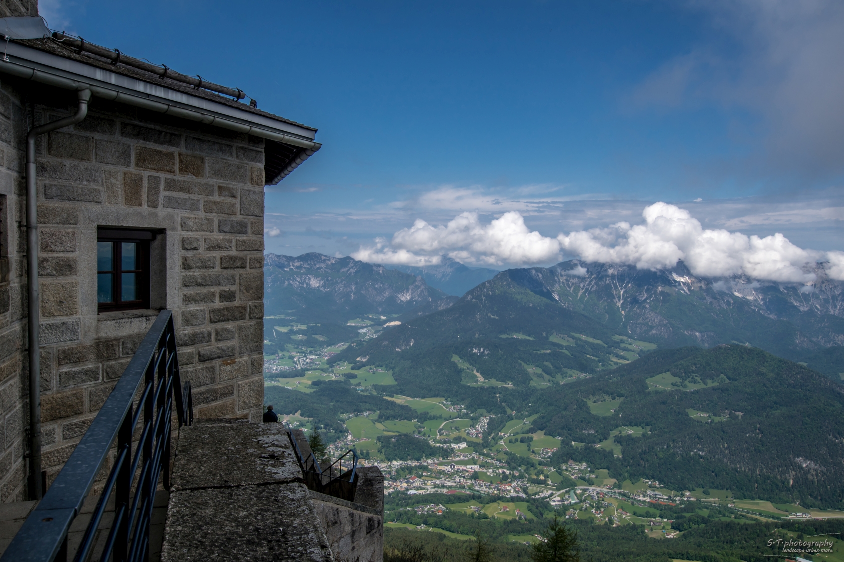 Nach einem ausgedehnten Frühstück ging es auch schon los, wir steuerten den Parkplatz am Obersalzberg an und kauften die Tickets für den Bus. Wenige Minuten später startete dieser auch schon. Der Bus brachte uns die steile Straße hinauf durch einige Tunnel bis kurz unter das Kehlsteinhaus. Von hier musste man durch einen Tunnel in den Berg laufen und nach kurzer Wartezeit mit dem Aufzug direkt nach oben fahren.