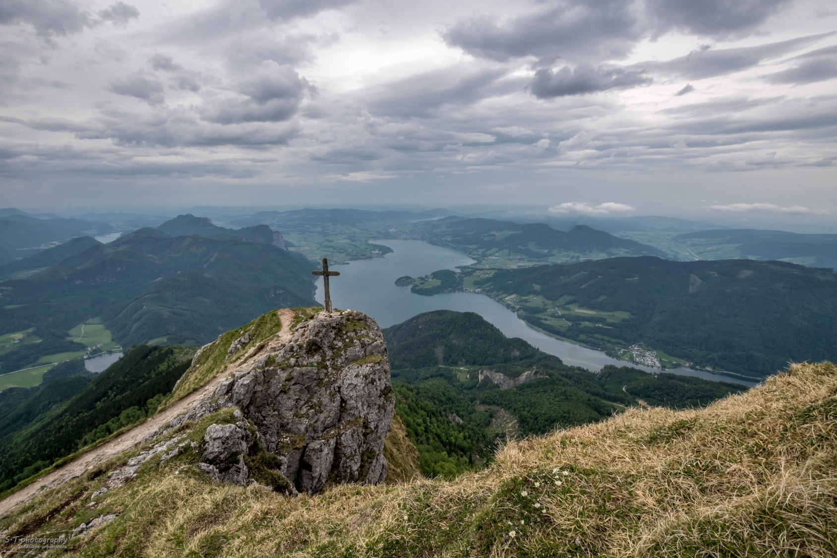 Hier oben war schon ganz schön viel los. Wir liefen erstmal vorbei an der Besucherterrasse zum Gipfelkreuz und weiter... Hier war ein Rundweg ausgeschildert den wir ein kurzes Stück gehen wollten. Nach der nächsten Kurve waren wir ganz alleine. Was eine wunderbare Ruhe und eine wahnsinns Aussicht. Den Rundweg gingen wir wirklich nur ein kleines Stück denn der Weg erwies sich als ziemlich steil, zu steil für mich momentan. Man merkt schon dass man mit dem zusätzlichen Gewicht und der veränderten Situation schwerer Luft bekam.