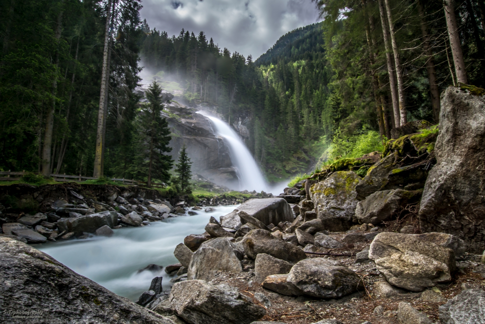 Bei Sonnenschein ging es aber erstmal los zum Gollinger Wasserfall. Ein sehr feuchter Spaß, mit tosende Wasserfall machte es nicht einfach in näherer Umgebung ungestört Fotos zu machen. Die Kamera war immer sehr schnell vollgespritzt, aber mit einem Tuch bewaffnet gelangen dann doch ein paar. Außerdem sah die durch die Bäume einfallenden Sonnenstrahlen im Wassernebel richtig super aus.