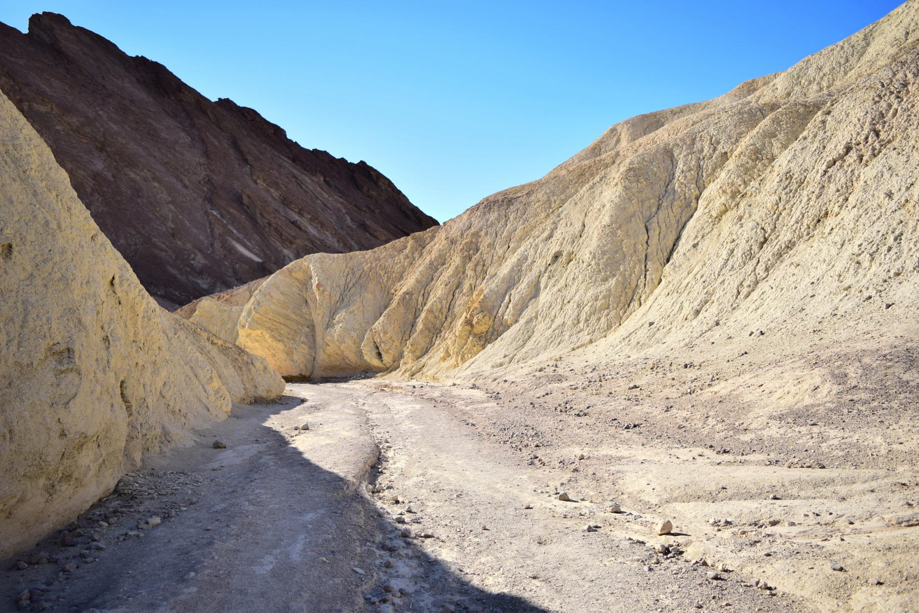 Jetzt folge ich dem Golden Canyon schließlich zurück zum Parkplatz. Der Trail ist die ganze Zeit angenehm und sanft abfallend, aber dafür bin ich ja auch im Vorfeld teilweise gut bergauf gelaufen. Es kommen mir immer mehr Menschen entgehen, auch wenn es auf den Fotos nicht so aussieht... Da habe ich natürlich gewartet, bis keiner mehr im Blickfeld war. Wirklich voll ist es nicht, aber schon deutlich belebter. Mein persönliches Highlight ist eine Gruppe Frauen in Stöckelschuhen, die wissen wollen, ob es genau so uneben weiter geht