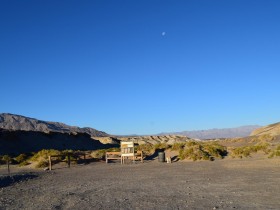 Ich werfe mir die Jacke über, gehe Zähne putzen und verlasse dann auch direkt den Campground, um mich wieder auf dem Parkplatz des Visitor Centers - mit laufender Heizung und WLAN - fertig zu machen. Vorher checke ich allerdings schnell aus, dazu muss ich nur den Klebezettel von meiner Windschutzscheibe lösen und am Ausfahrtshäusschen hinterlassen. Das war meine dritte und letzte Nacht im Death Valley, aber noch kann und will ich mich nicht vom Park verabschieden. Ich habe heute eine lange Fahrstrecke vor mir, doch die kann ich auch noch hinter mich bringen sobald es dunkel ist.