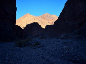 Bergab ist das Laufen natürlich viel angenehmer und ich komme erheblich schneller voran, als auf dem Hinweg. Teilweise steht die Sonne jetzt auch etwas besser, aber viele Fotos mache ich eigentlich nicht mehr. Ich rechne in jeder Kurve damit, der Frau von Anfang mal zu begegnen, aber der Fall Canyon soll absolut einsam bleiben. Weder ein Mensch, noch ein Bighorn Sheep läuft mir über den Weg.