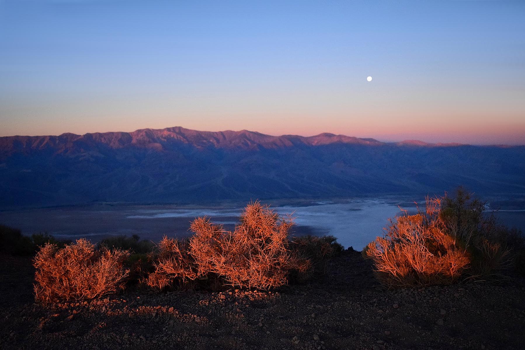 Später liegt der Fokus mehr auf den angeleuchteten Bergen im Hintergrund. Noch vollkommen im Schatten liegt mir das gigantische Badwater Basin majestätisch zu Füßen, während der frostige Wind mich fast von den Füßen weht. Es ist ein sehr viel schönerer Sonnenaufgang als ich ihn erwartet hatte und ich bin in dem Moment einfach nur überwältigt und glücklich hier sein zu dürfen.