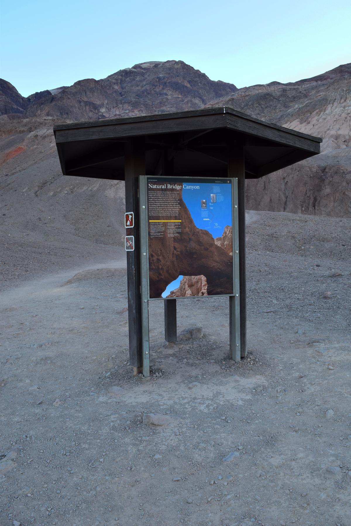 Den "Hike" zur Natural Bridge kann man eigentlich nicht wirklich als Solchen bezeichnen. Es ist viel mehr ein winzig kleiner Spaziergang zum aufwärmen. Aufwärmen... Normalerweise die letzte Aktivität, die man im Death Valley praktizieren möchte, geht das doch sonst von ganz alleine. Heute jedenfalls laufe ich in langer Wanderhose, Top, Fleece Pullover und Snowboard Jacke am Trailhead los.