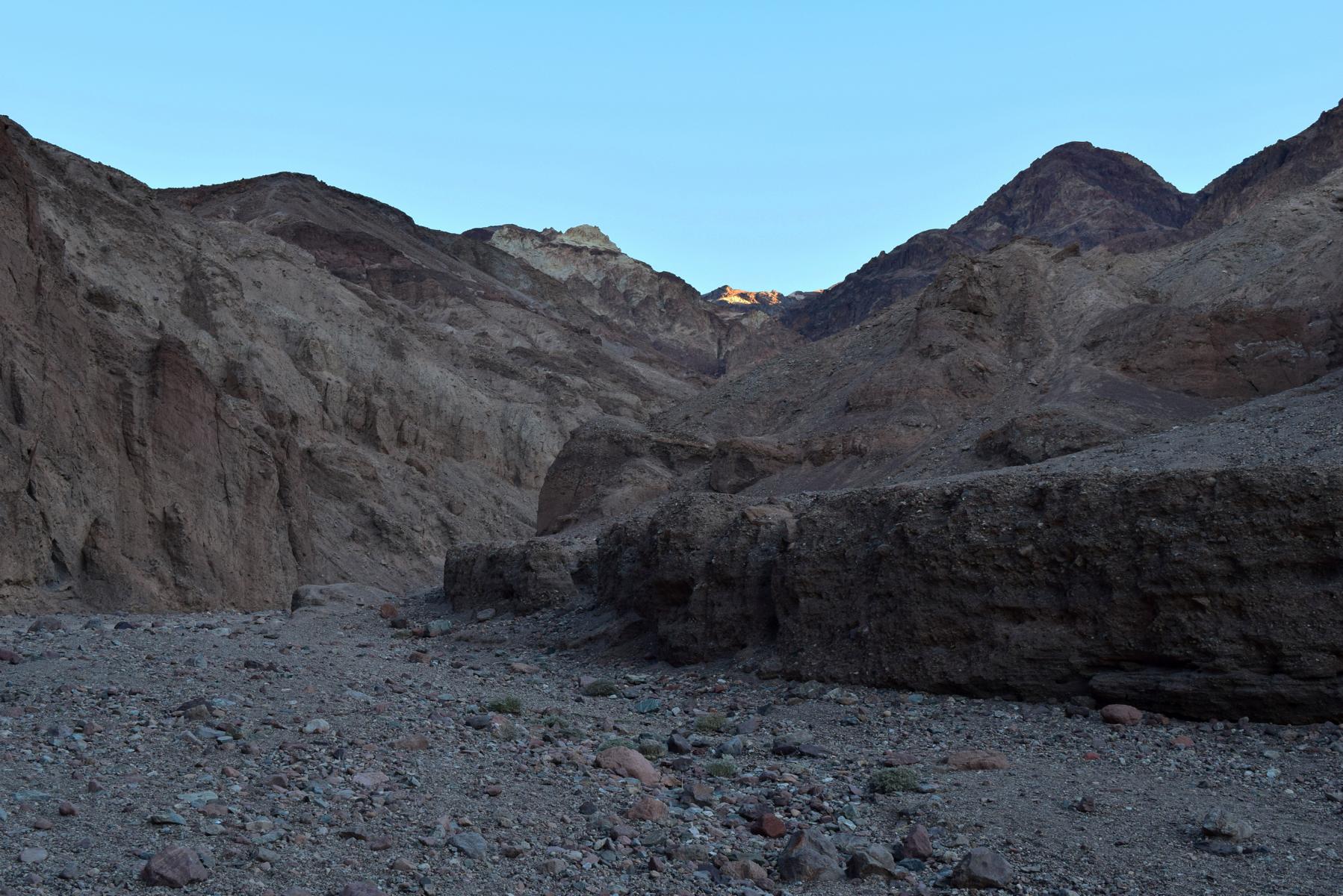 Eigentlich war heute der Sunrise am Zabriskie Point geplant, dann sollte das Auto dort für den großen Golden Canyon Loop stehen bleiben. Da ich gestern dort den Parkautomaten entdeckt habe fällt das aus und ich werde den Golden Canyon Trailhead zum Parken nutzen. Da alle heutigen Ziele auf der Badwater Road liegen entscheide ich mich stattdessen für den Sunrise bei Badwater und arbeite mich dann schließlich zurück zur Ranch vor.