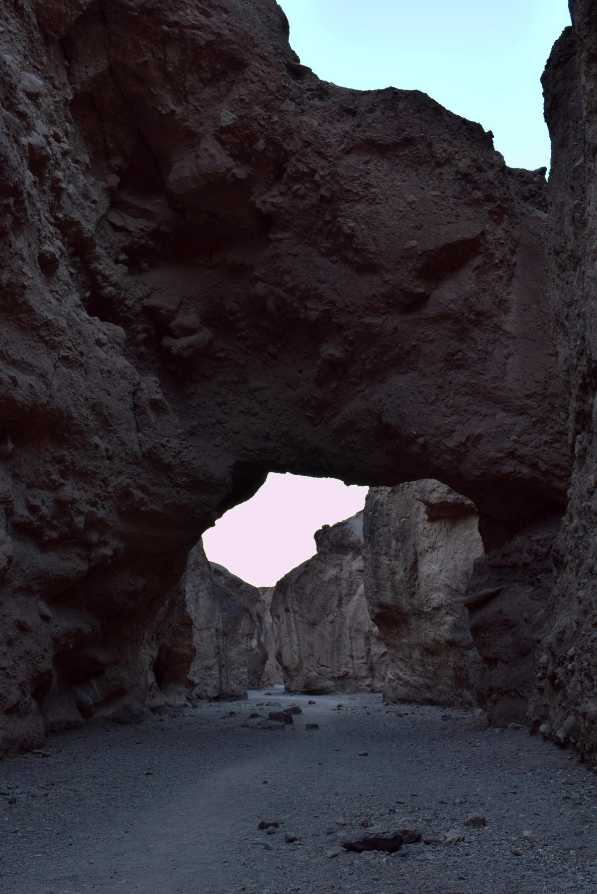 Den "Hike" zur Natural Bridge kann man eigentlich nicht wirklich als Solchen bezeichnen. Es ist viel mehr ein winzig kleiner Spaziergang zum aufwärmen. Aufwärmen... Normalerweise die letzte Aktivität, die man im Death Valley praktizieren möchte, geht das doch sonst von ganz alleine. Heute jedenfalls laufe ich in langer Wanderhose, Top, Fleece Pullover und Snowboard Jacke am Trailhead los.