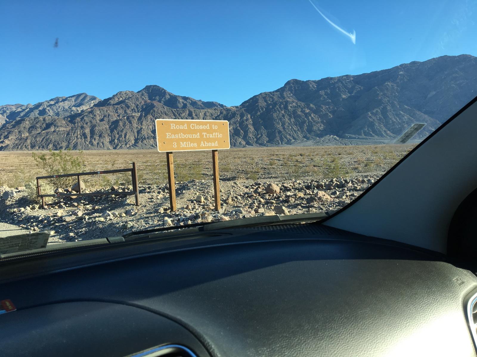 Ich werfe mir die Jacke über, gehe Zähne putzen und verlasse dann auch direkt den Campground, um mich wieder auf dem Parkplatz des Visitor Centers - mit laufender Heizung und WLAN - fertig zu machen. Vorher checke ich allerdings schnell aus, dazu muss ich nur den Klebezettel von meiner Windschutzscheibe lösen und am Ausfahrtshäusschen hinterlassen. Das war meine dritte und letzte Nacht im Death Valley, aber noch kann und will ich mich nicht vom Park verabschieden. Ich habe heute eine lange Fahrstrecke vor mir, doch die kann ich auch noch hinter mich bringen sobald es dunkel ist.