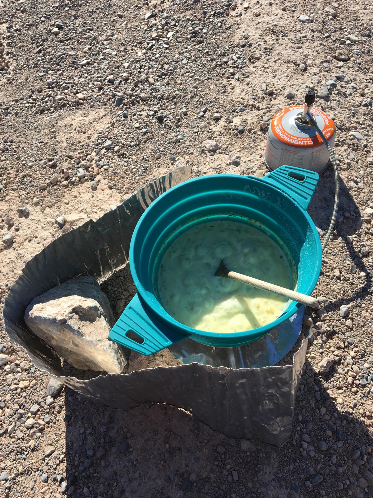 Zurück am Trailhead habe ich eigentlich noch immer nicht wirklich viel Hunger. Irgendwann vor der langen Fahrt muss ich aber sowieso etwas essen und wie bereits erwähnt ist heute der wärmste Tag bisher. Da bei mir gilt "je heißer desto besser" entscheide ich mich dafür, hier am Parkplatz noch zu kochen und die Temperaturen noch ein bisschen zu genießen - schließlich führt mich die folgende Strecke in deutlich kühlere Gebiete.
