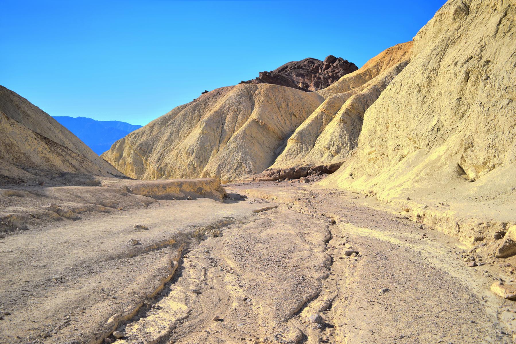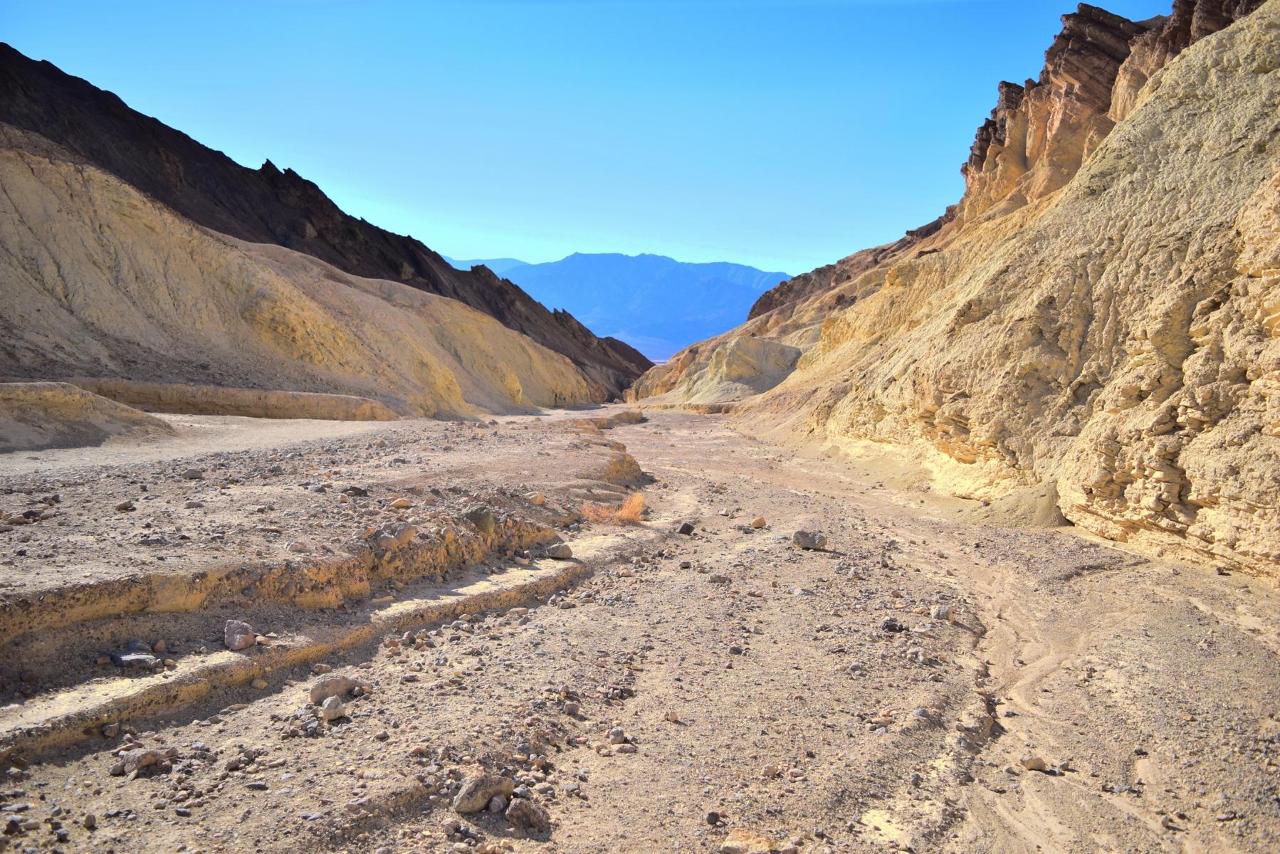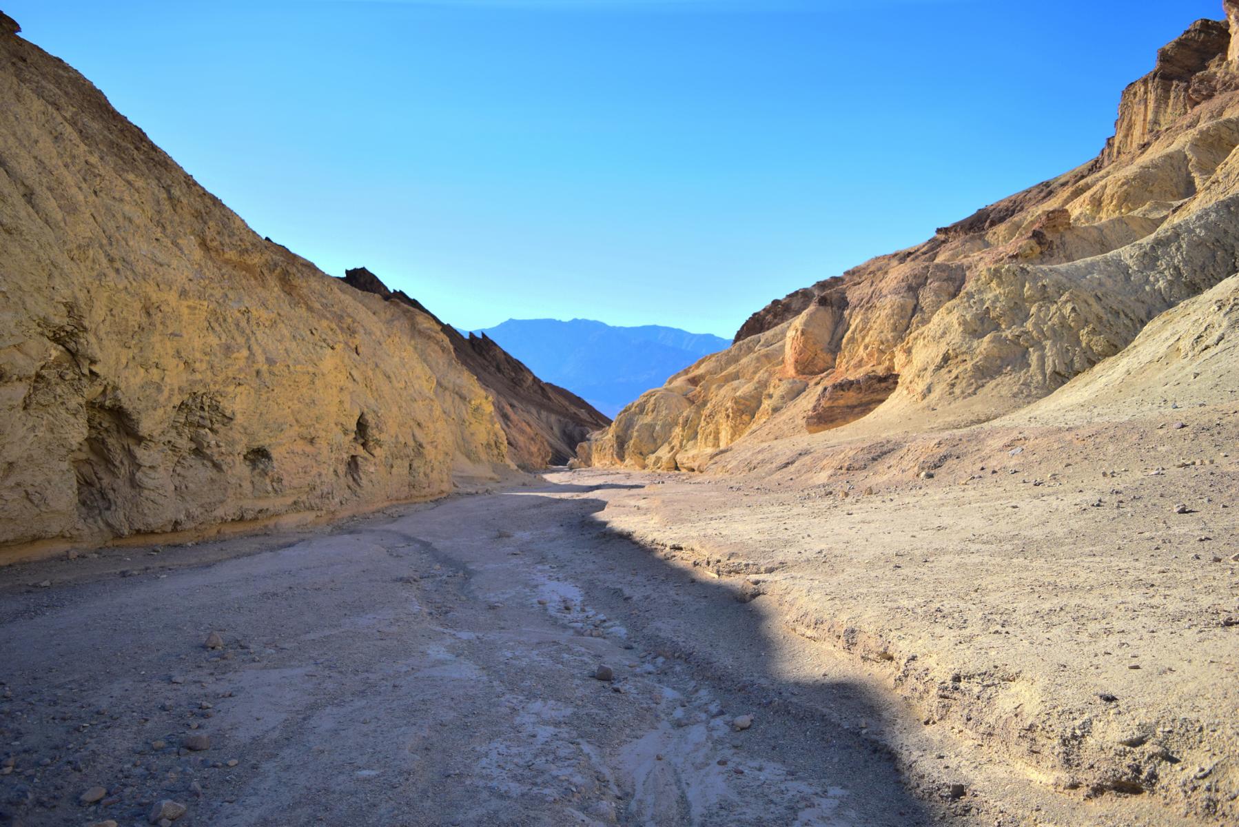 Jetzt folge ich dem Golden Canyon schließlich zurück zum Parkplatz. Der Trail ist die ganze Zeit angenehm und sanft abfallend, aber dafür bin ich ja auch im Vorfeld teilweise gut bergauf gelaufen. Es kommen mir immer mehr Menschen entgehen, auch wenn es auf den Fotos nicht so aussieht... Da habe ich natürlich gewartet, bis keiner mehr im Blickfeld war. Wirklich voll ist es nicht, aber schon deutlich belebter. Mein persönliches Highlight ist eine Gruppe Frauen in Stöckelschuhen, die wissen wollen, ob es genau so uneben weiter geht