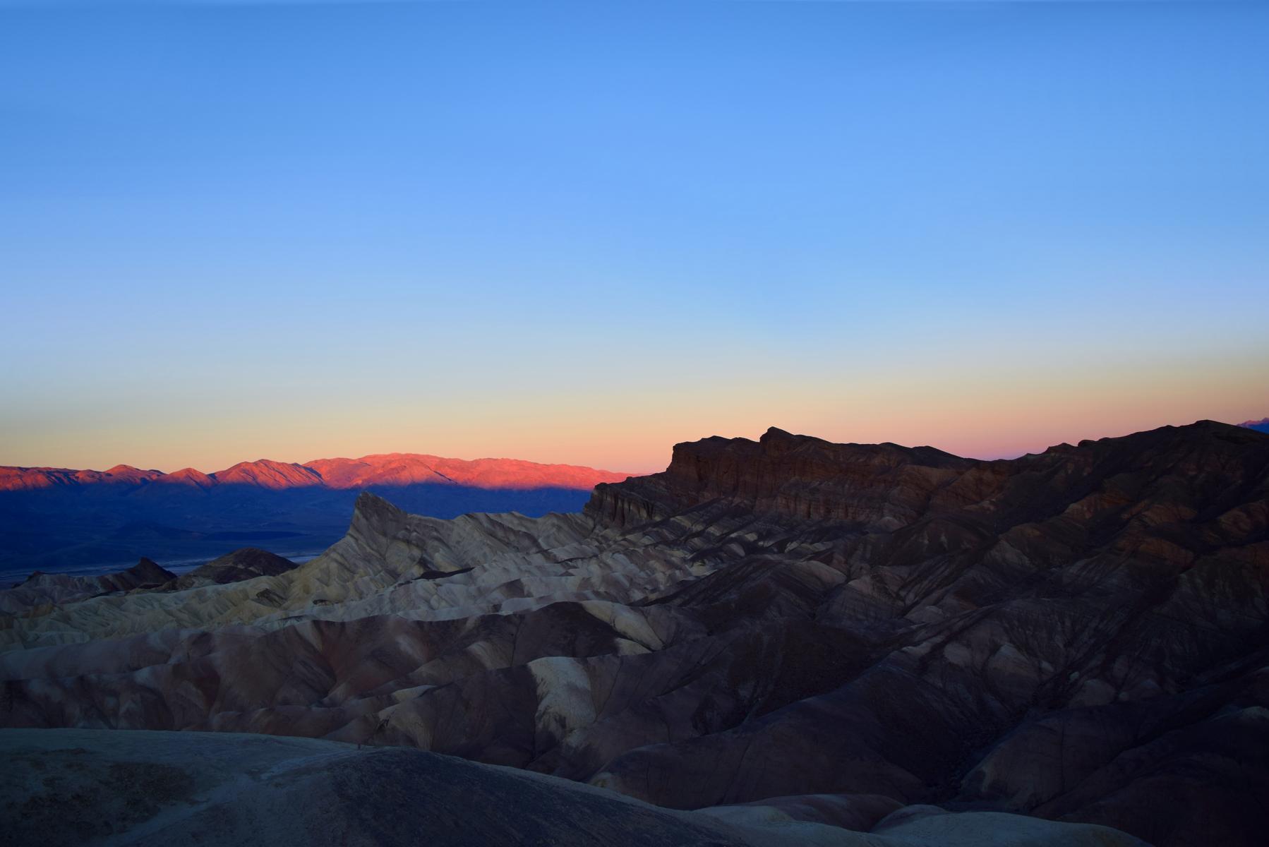 Toll... So gefällt mir der Zabriskie Point schon viel besser als zu den anderen Tageszeiten. Mein Lieblings Sonnenaufgang im Park bleibt allerdings Dantes View, aber das liegt wohl auch an der Ruhe die ich dort oben hatte. Klar, es ist wunderschön hier, aber eben auch überlaufen und dementsprechend laut. -