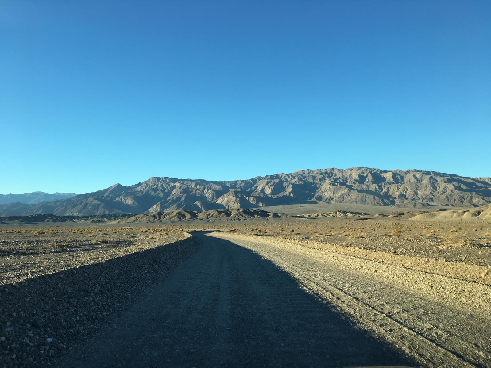 Der eigentliche Plan für heute war nicht der Sunrise am Zabriskie Point. Ursprünglich wollte ich um diese Zeit bereits unterwegs sein in Richtung Beatty, die Titus Canyon Road fahren und mir Leadfield ansehen. Den Plan habe ich aber bereits am Abend nach dem Racetrack aufgegeben, denn die Titus Canyon Road ist mir einfach zu lang um sie komplett alleine zu fahren. Im Nachhinein bin ich sehr froh über die Entscheidung, denn Dominik war Anfang Januar dort und meinte, der Zustand wäre deutlich schlechter gewesen als die der Racetrack Valley Road. Daher wurde der eigentlich geplante Sunrise am Zabriskie Point an Tag 4 durch Badwater ersetzt und dafür jetzt nachgeholt.
