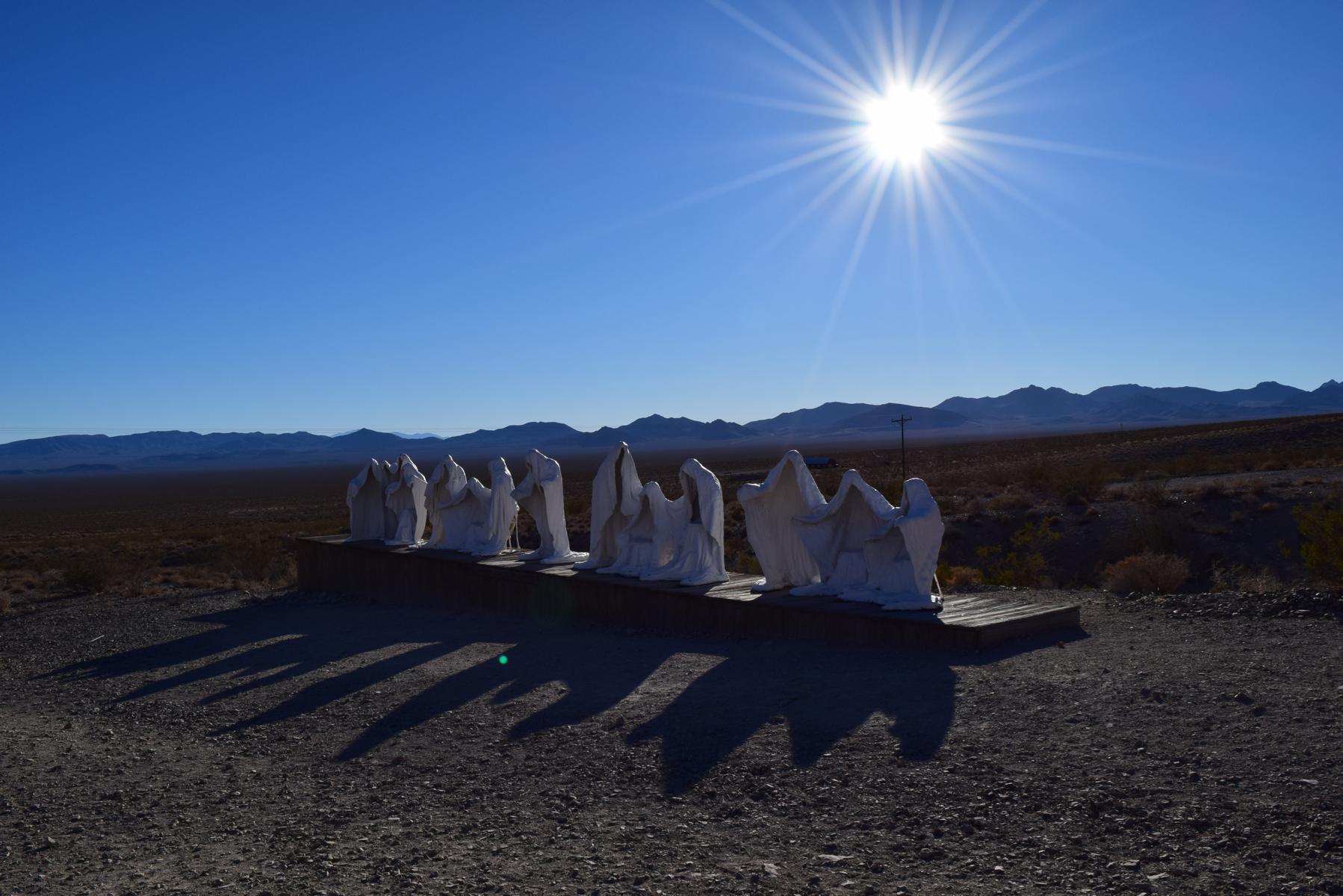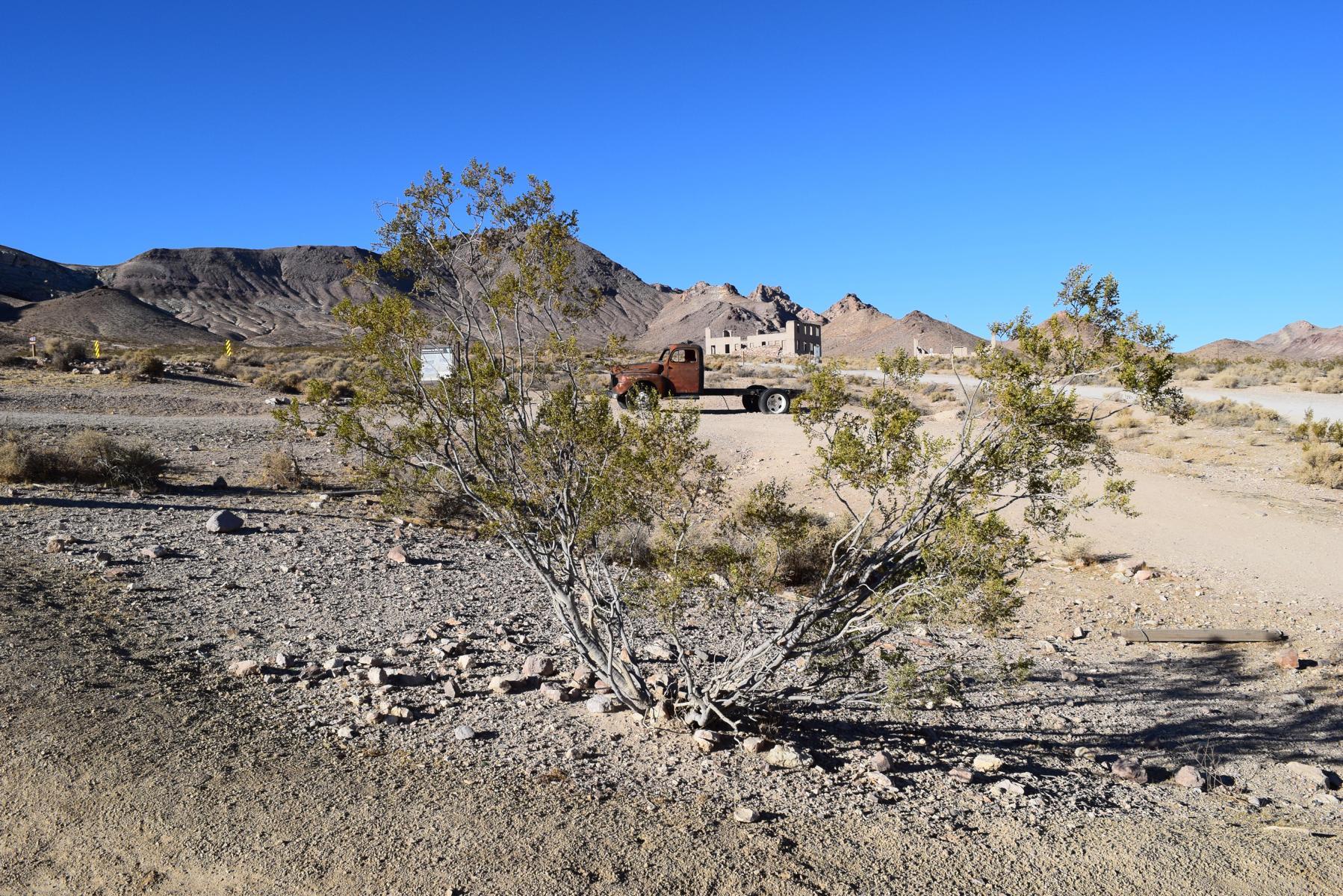Rhyolite ist so ein Ort, den ich schon öfter in irgendwelche Planungen gestopft habe, der aber am Ende immer wieder rausgeflogen ist weil es nicht gepasst hat. Nachdem ich 2015 Bodie gesehen habe, erwarte ich hier nicht besonders viel. Allerdings ist die Anfahrt kurz und liegt sowieso auf dem Weg und es dauert auch noch ein wenig, bis es dunkel wird.