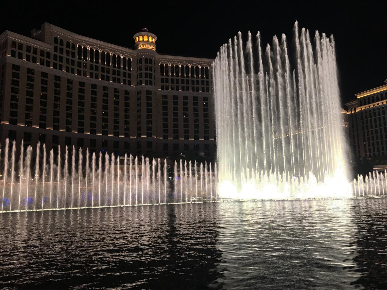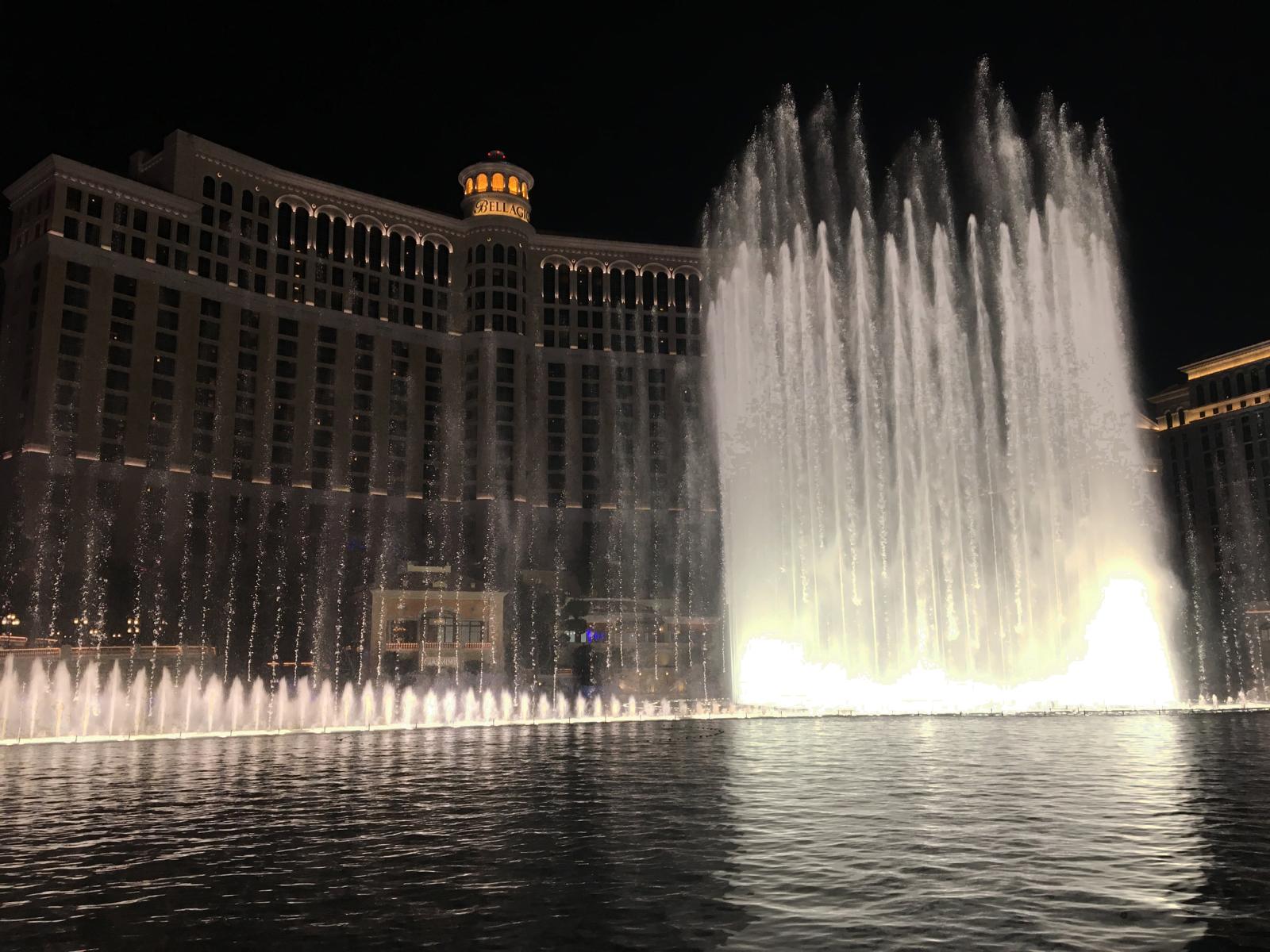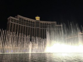 Ich komme genau pünktlich für die nächste Fountains Show wieder am Bellagio vorbei und bleibe natürlich nochmal stehen. Das ist wirklich jedes mal wieder beeindruckend.