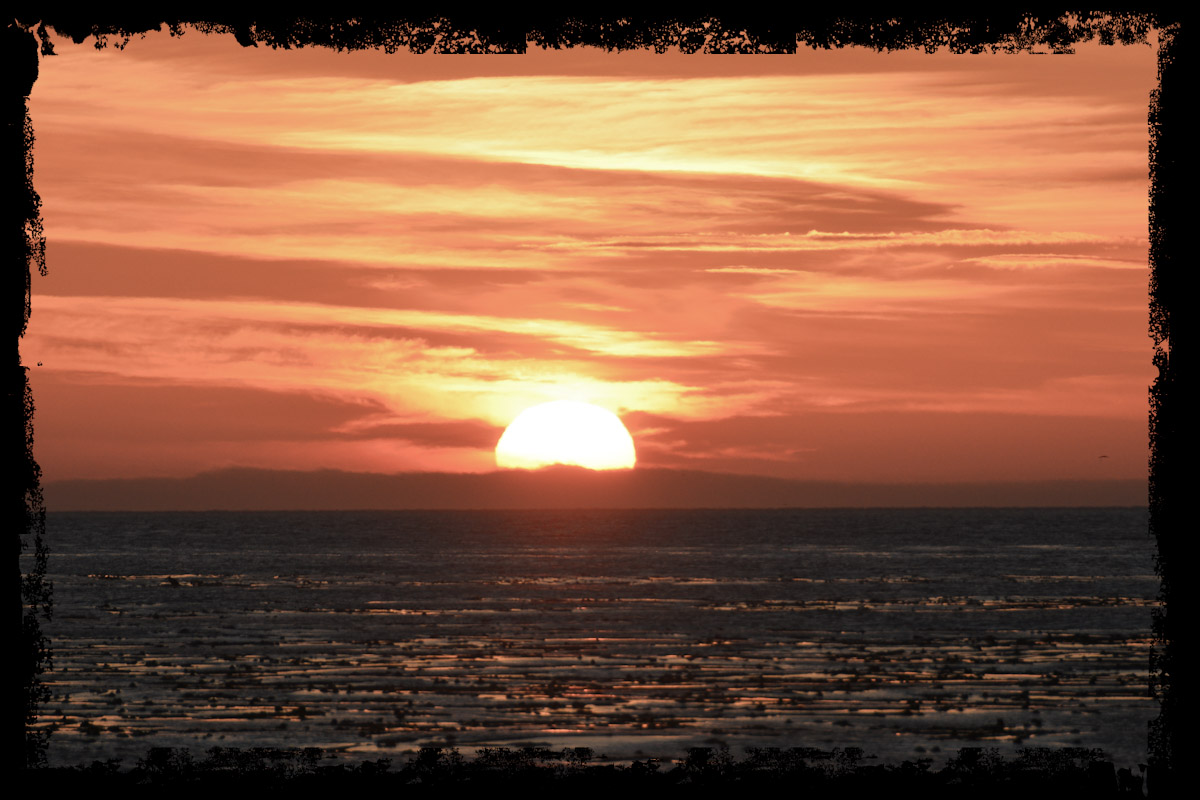 Lange dauert es dann auch nicht und die Sonne geht unter, allerdings nicht wie gehofft im Meer, denn kurz bevor sie das tut verschwindet sie sang und klanglos in einer Wolkenschicht.