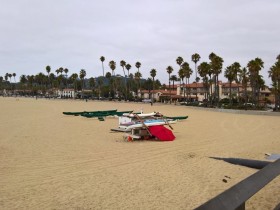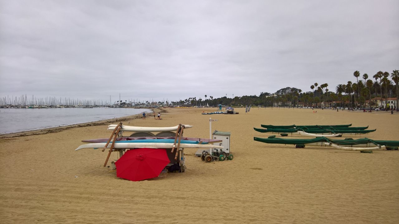 Da es Sonntag und noch recht früh ist, kommen wir gut durch und landen schnell auf der 1. Malibu erleben wir im Vorbeifahren, unser erstes Ziel ist Santa Barbara. Auch hier ist es noch bewölkt und unglaublich schwül, und dabei ist es erst kurz nach 10 Uhr. Wir parken in der Chapala Street und laufen über die State Street in Richtung Stearns Wharf.