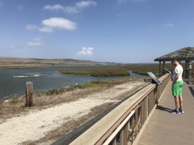 Die State Street ist ziemlich modern, viele kleine chice Restaurants, Shops und Hotels. Am Ende geht sie direkt in den Pier über. Auf der Stearns Wharf selbst gibt es nicht viel zu sehen. Einige Restaurants, einige Künstler, insgesamt ist aber noch wenig los. Wir laufen einmal bis zum Ende und bleiben an den Hinweistafeln zwischendurch kurz stehen.