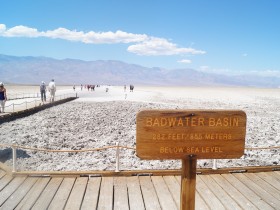 Wir fahren weiter Richtung Furnace Creek. Kurz vorher biegt die Badwater Road links ab, wir entscheiden uns aber, kurz zu tanken. Über die Preise haben wir uns irgendwie gar keine Gedanken gemacht, ich kann es auch bis heute nicht richtig einschätzen, ob das nun teuer war oder nicht (irgendwas um die $3 pro Gallone). Maesl holt sich noch eine Coke (er ist süchtig danach :crazy: ) und dann machen wir uns auf in Richtung Badwater.