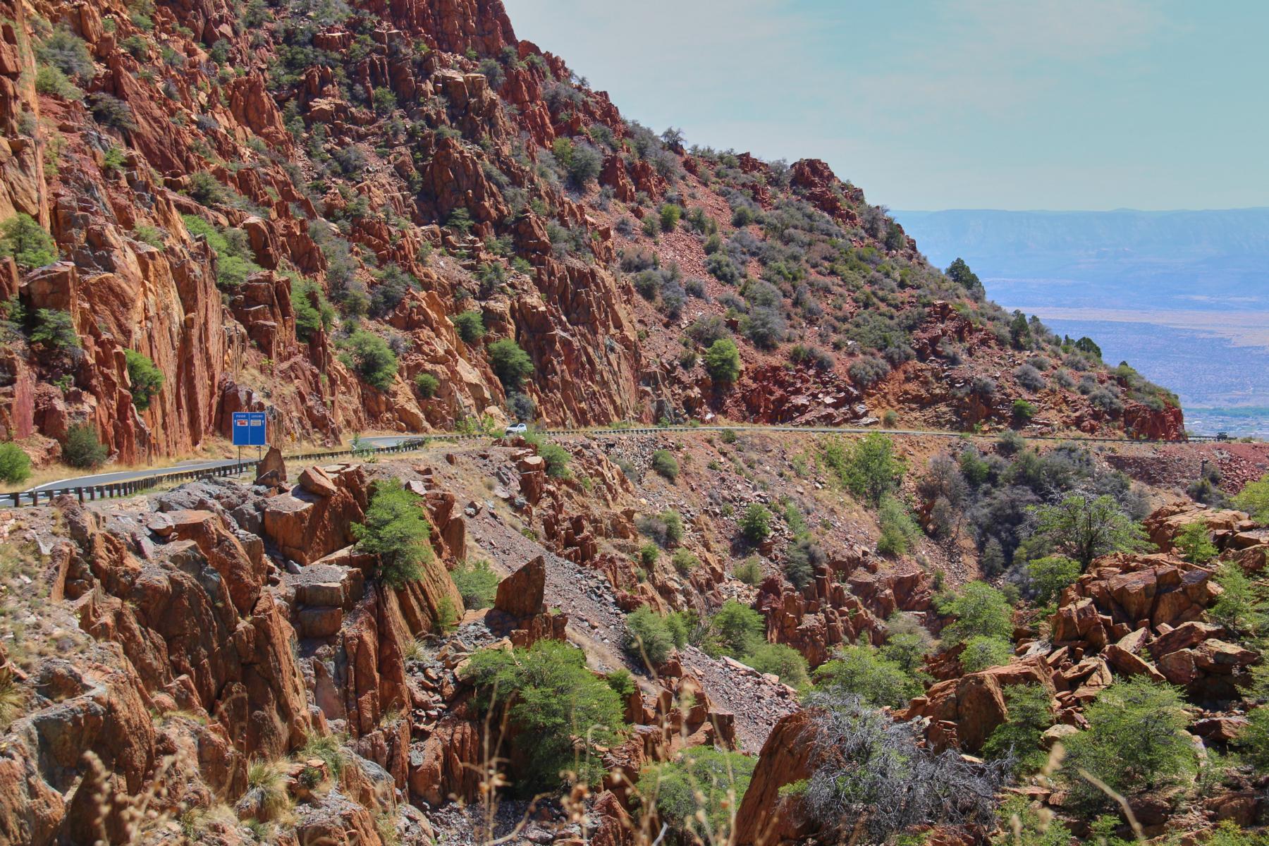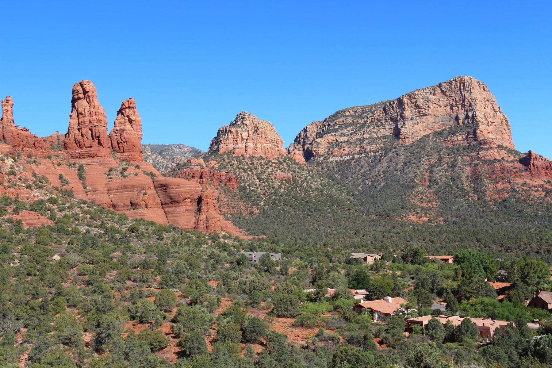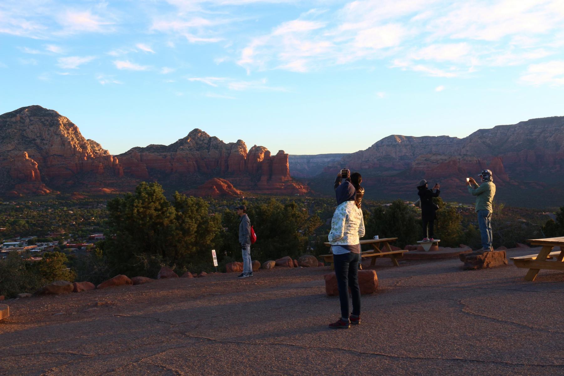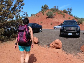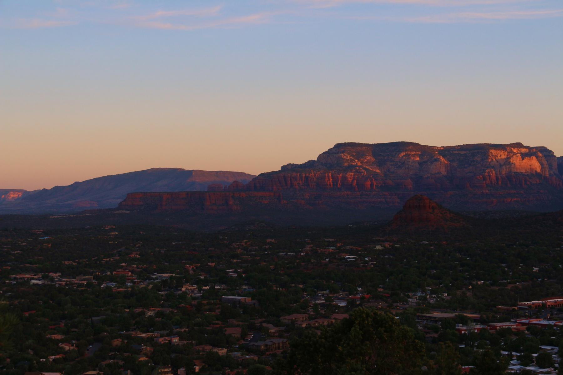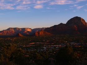 Auf Sedona freue ich mich sehr, auch wenn ich weiß, da eine Nacht eigentlich viel zu wenig Zeit ist, doch es ist besser als nichts. Der Ort ist eine Künstlerstadt und ein Zentrum der New Age Bewegung. Die Berge, die Sedona umgeben, sollen spirituelle Kräfte haben und drei Vortexe enthalten: „A place of peace and power“. Das Zentrum der Kraft soll sich auf dem markanten Cathedral Rock befinden, der über der Stadt thront. Durch die erhöhte Lage (1372 m) am Colorado Plateau herrscht in Sedona ein eher mildes Klima mit nächtlichem Frost bis Februar. Die Gegend ist dadurch ungewöhnlich grün für die Wüste, zu der der Ort dennoch gehört. Die Lebenshaltungskosten in Sedona sind 50% höher als der Durchschnitt der restlichen USA.