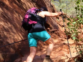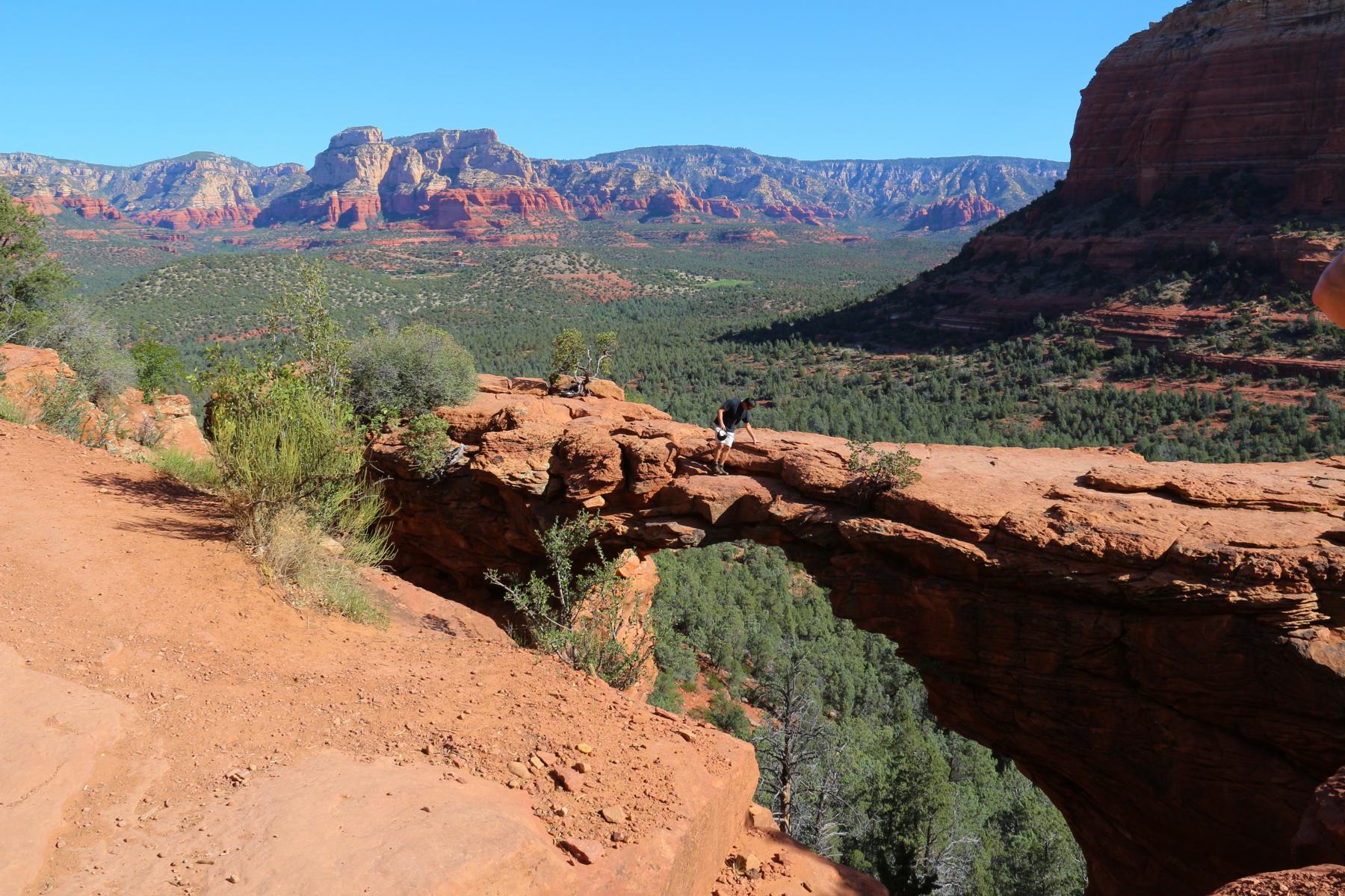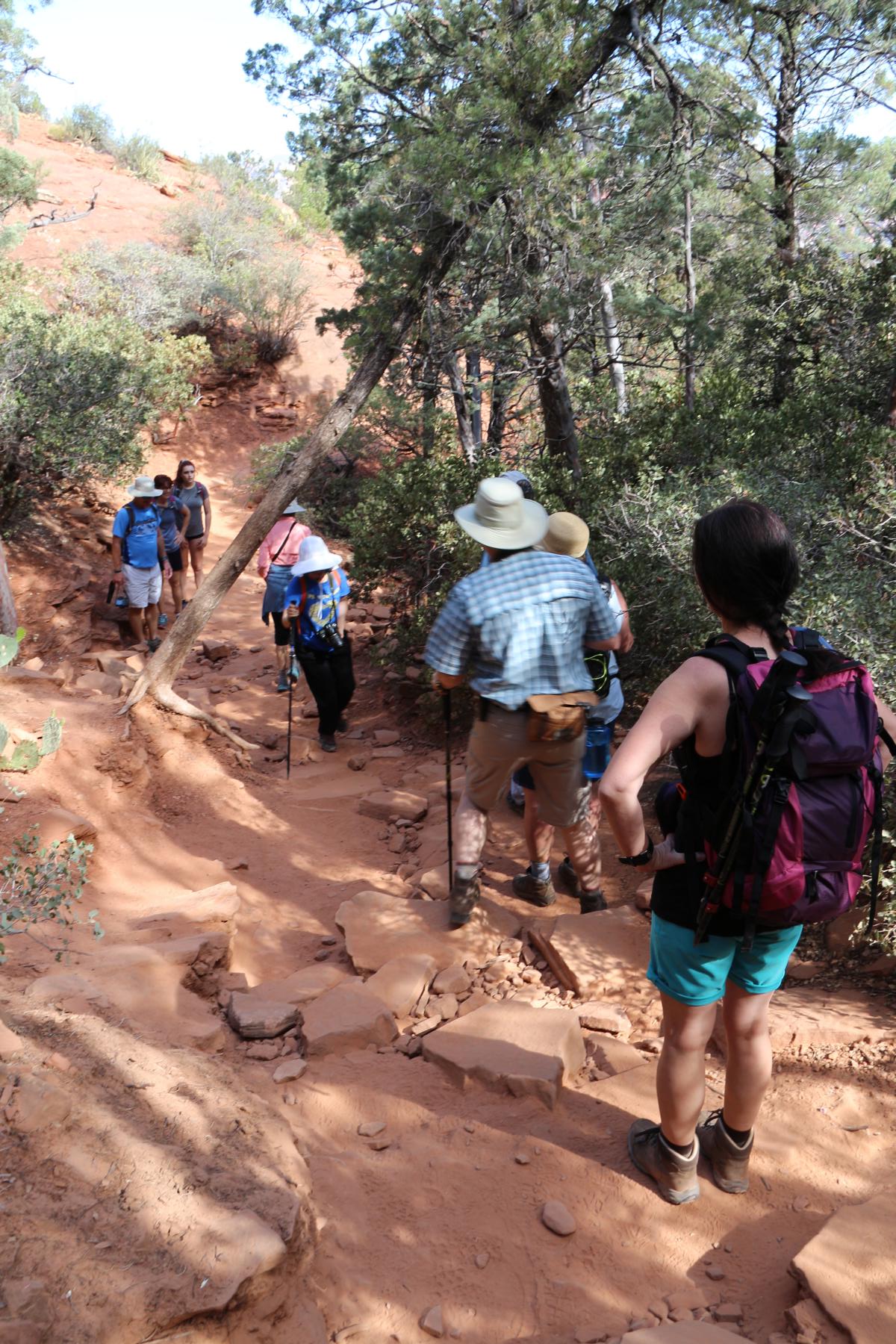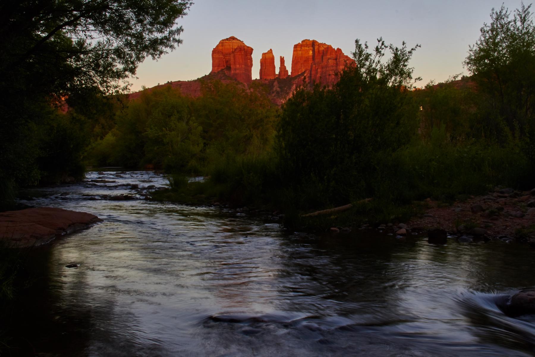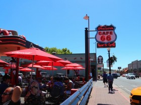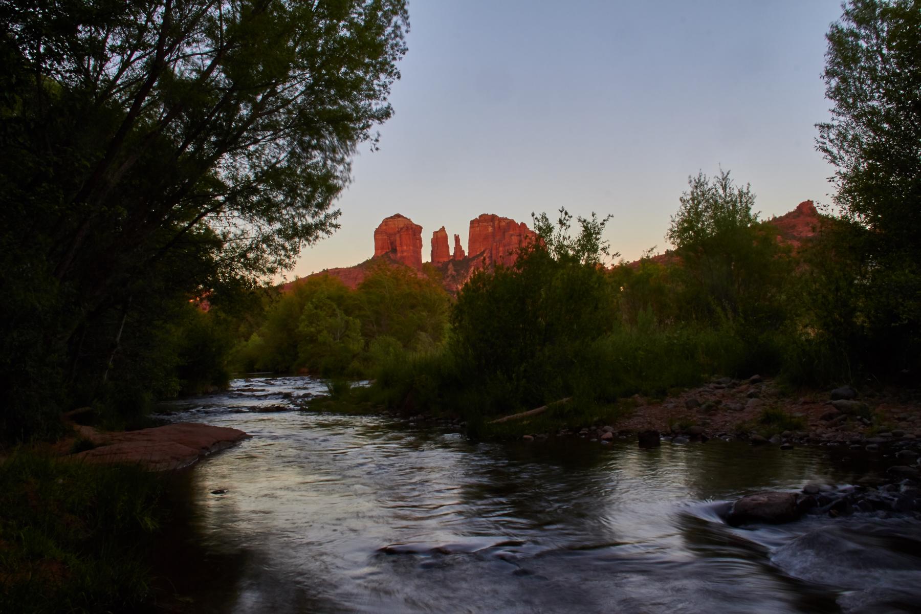 Auf Sedona freue ich mich sehr, auch wenn ich weiß, da eine Nacht eigentlich viel zu wenig Zeit ist, doch es ist besser als nichts. Der Ort ist eine Künstlerstadt und ein Zentrum der New Age Bewegung. Die Berge, die Sedona umgeben, sollen spirituelle Kräfte haben und drei Vortexe enthalten: „A place of peace and power“. Das Zentrum der Kraft soll sich auf dem markanten Cathedral Rock befinden, der über der Stadt thront. Durch die erhöhte Lage (1372 m) am Colorado Plateau herrscht in Sedona ein eher mildes Klima mit nächtlichem Frost bis Februar. Die Gegend ist dadurch ungewöhnlich grün für die Wüste, zu der der Ort dennoch gehört. Die Lebenshaltungskosten in Sedona sind 50% höher als der Durchschnitt der restlichen USA.
