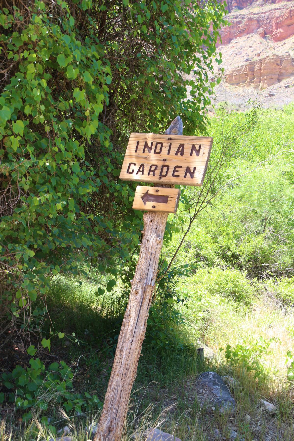 Um Punkt 13 Uhr erreichen wir den Indian Garden, eine große Oase mitten im Canyon. Hier gibt es einen Campingplatz, Toiletten und Wasserstellen. Hier werden wir jetzt nochmal eine längere Pause einlegen.