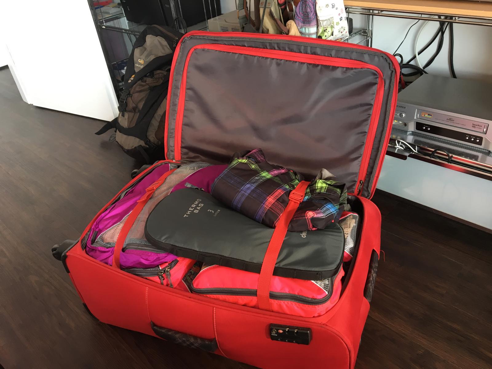 Da die Koffer- und Packdiskussionen momentan überall zunehmen, möchte ich heute zumindest mal einen Einblick geben, wie das bei mir aussieht. Reisen werde ich mit einem ganz normalen Koffer mit internationalen Maßen, der leer 3,8kg auf die Waage bringt. Außerdem habe ich einen 28 Liter Wanderrucksack von Deuter als Handgepäck dabei (Danke liebe Kati – mal wieder – für die nette Leihgabe, mein 14 Liter Rucksack ist einfach zu klein diesmal), so wie eine Kamera Tasche.