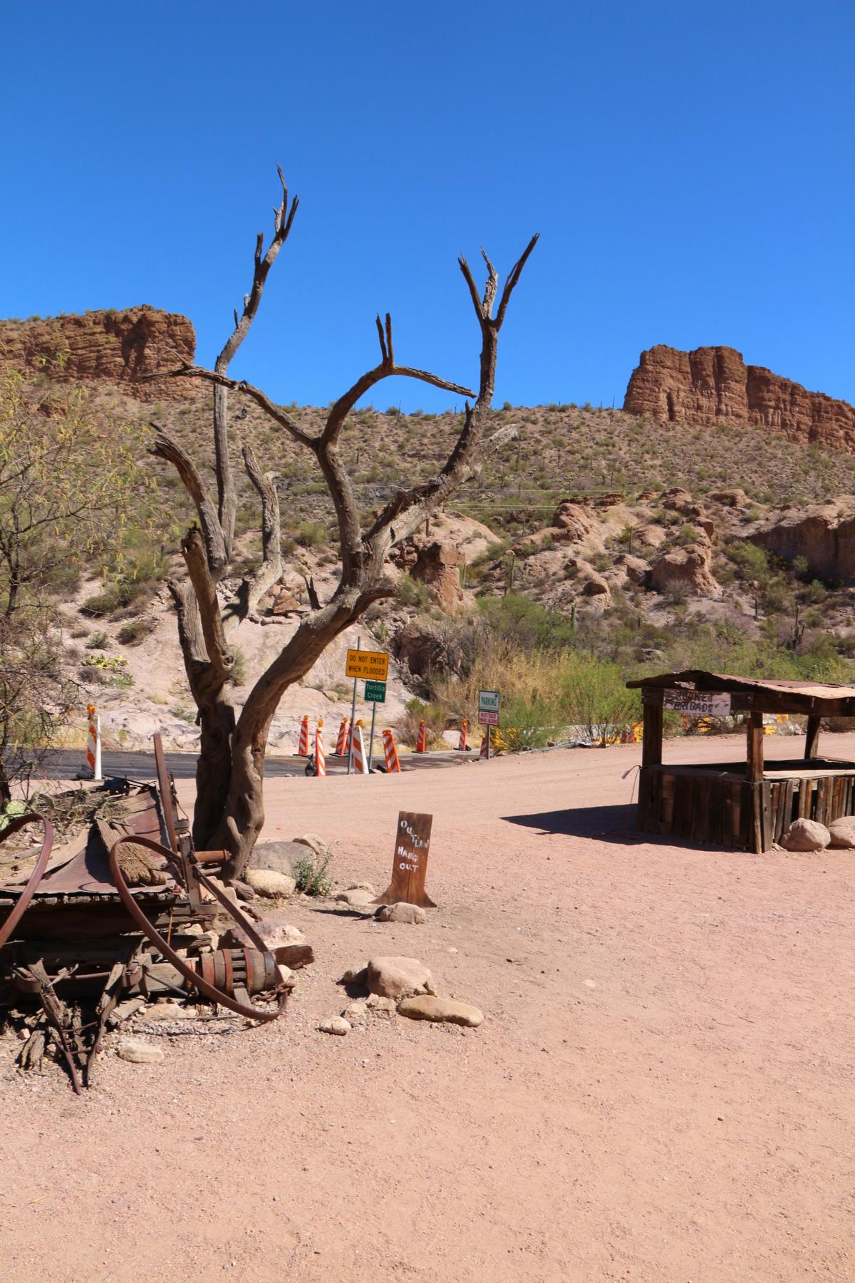 Nachdem alles auf dem Zimmer in der 1. Etage verstaut ist, greifen wir uns unsere Rucksäcke und fahren gleich wieder aus Apache Junction raus, auf den Apache Trail bis zum Lost Dutchman State Park, den wir nach 15 Minuten bereits erreichen.