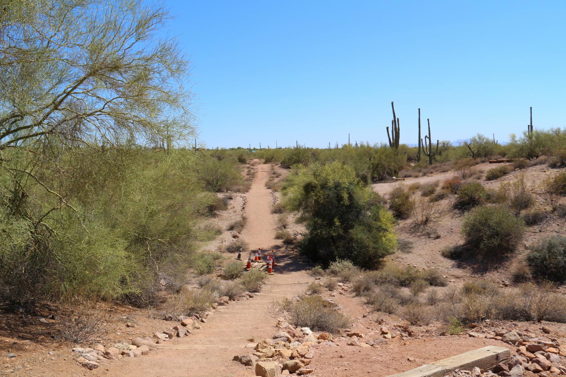 Der Trail führt zunächst einmal kreuz und quer über den Campingplatz. Eigentlich ist der Lost Dutchman State Park auch nichts anderes, als ein riesiger Campingplatz, auf den Trails läuft man aus dem Park raus. Man hätte wohl auch außerhalb irgendwo parken können und wäre auf den Trail gekommen, aber für 7$ wollte ich jetzt keine Experimente machen.