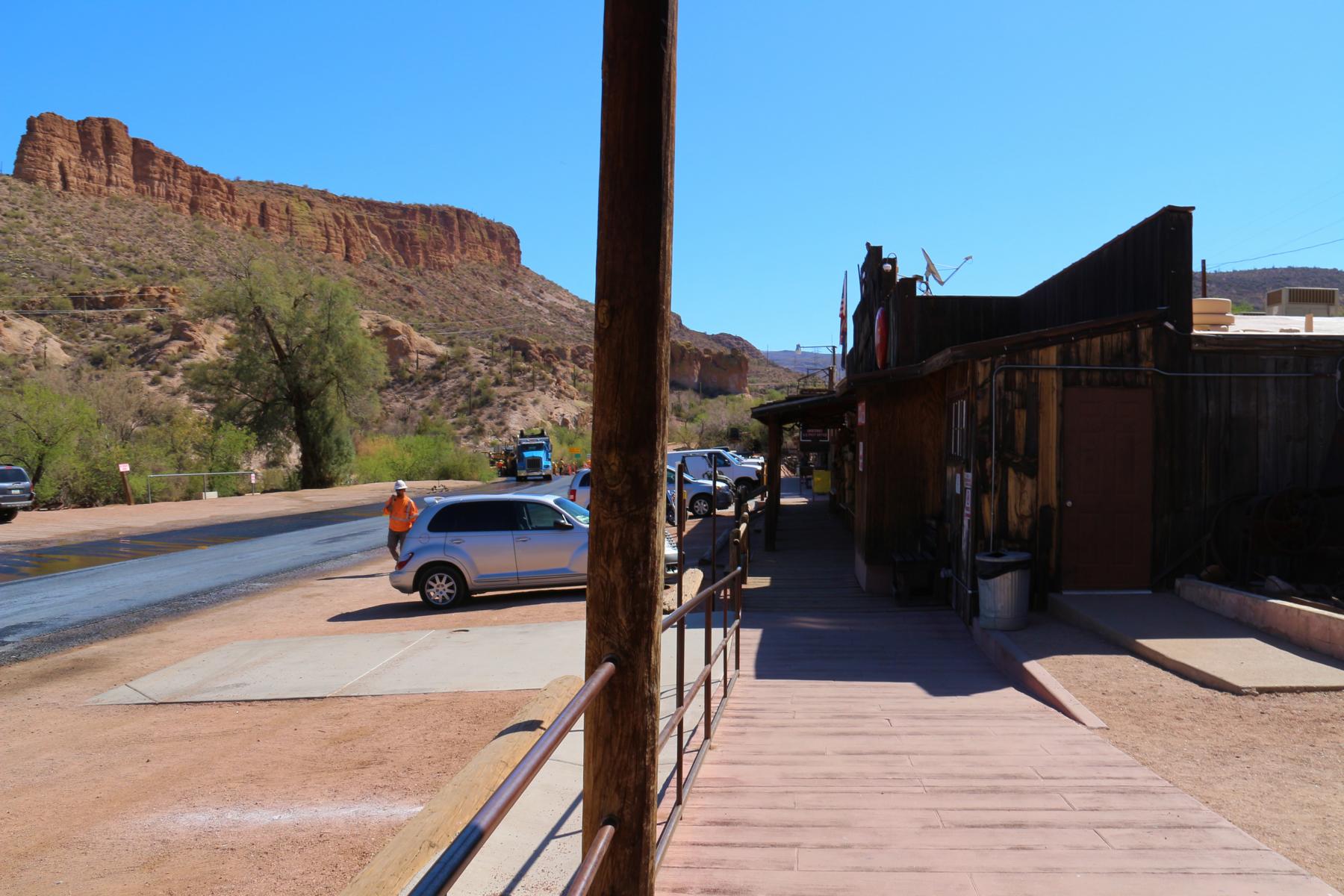 Nachdem alles auf dem Zimmer in der 1. Etage verstaut ist, greifen wir uns unsere Rucksäcke und fahren gleich wieder aus Apache Junction raus, auf den Apache Trail bis zum Lost Dutchman State Park, den wir nach 15 Minuten bereits erreichen.
