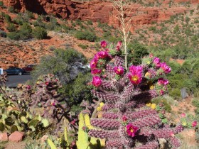 Auf Sedona freue ich mich sehr, auch wenn ich weiß, da eine Nacht eigentlich viel zu wenig Zeit ist, doch es ist besser als nichts. Der Ort ist eine Künstlerstadt und ein Zentrum der New Age Bewegung. Die Berge, die Sedona umgeben, sollen spirituelle Kräfte haben und drei Vortexe enthalten: „A place of peace and power“. Das Zentrum der Kraft soll sich auf dem markanten Cathedral Rock befinden, der über der Stadt thront. Durch die erhöhte Lage (1372 m) am Colorado Plateau herrscht in Sedona ein eher mildes Klima mit nächtlichem Frost bis Februar. Die Gegend ist dadurch ungewöhnlich grün für die Wüste, zu der der Ort dennoch gehört. Die Lebenshaltungskosten in Sedona sind 50% höher als der Durchschnitt der restlichen USA.