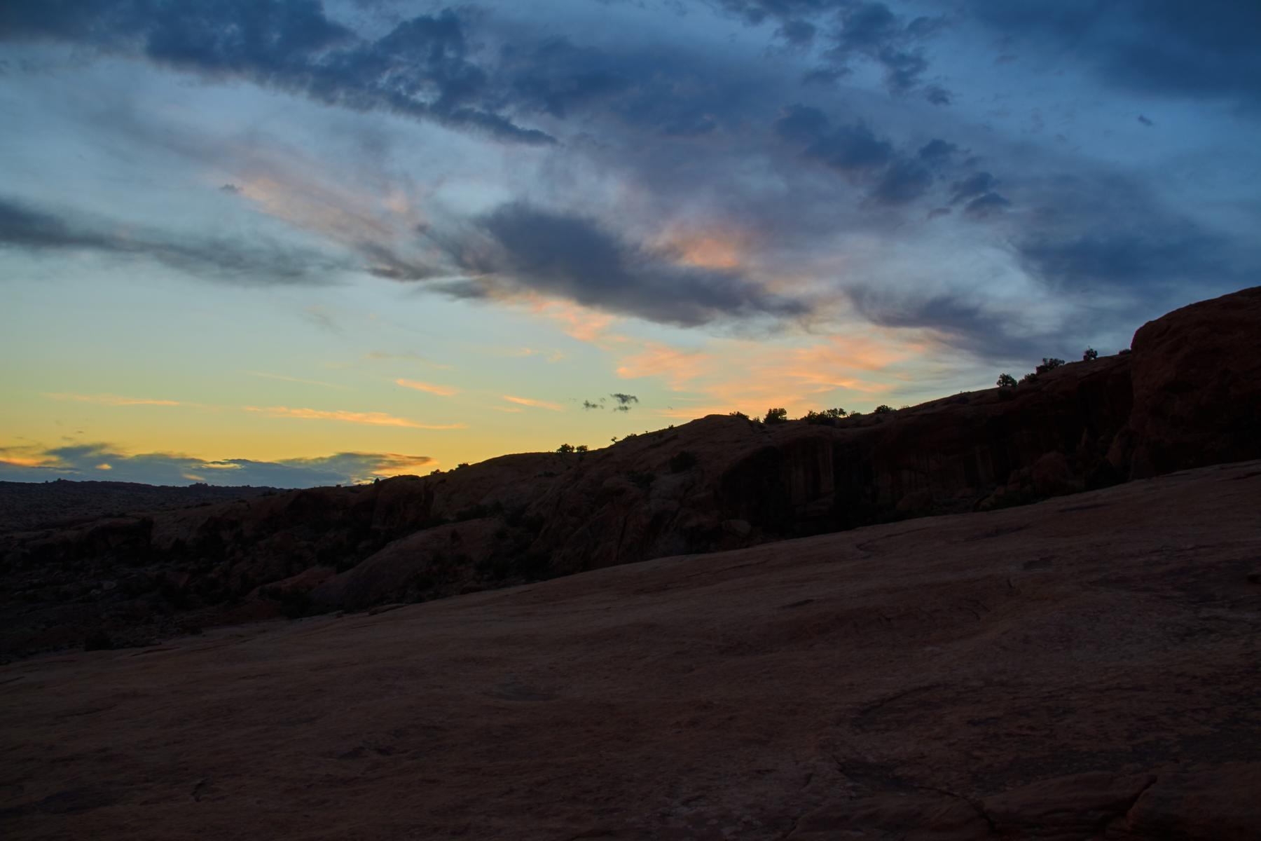 Hier oben hat man eine geniale Weitsicht auf den Arches National Park und die La Sal Mountains, die können wir aber momentan wirklich nicht genießen. Zum einen weht plötzlich ein eisiger Wind und zum anderen... WAS ZUR HÖLLE IST DA AM HIMMEL LOS?!?! Im nachhinein faszinierende Bilder, vor Ort... Uncool. Sehr uncool!