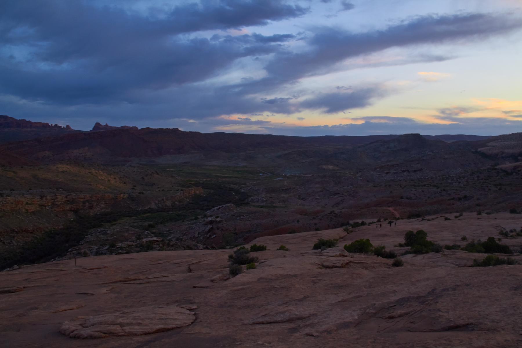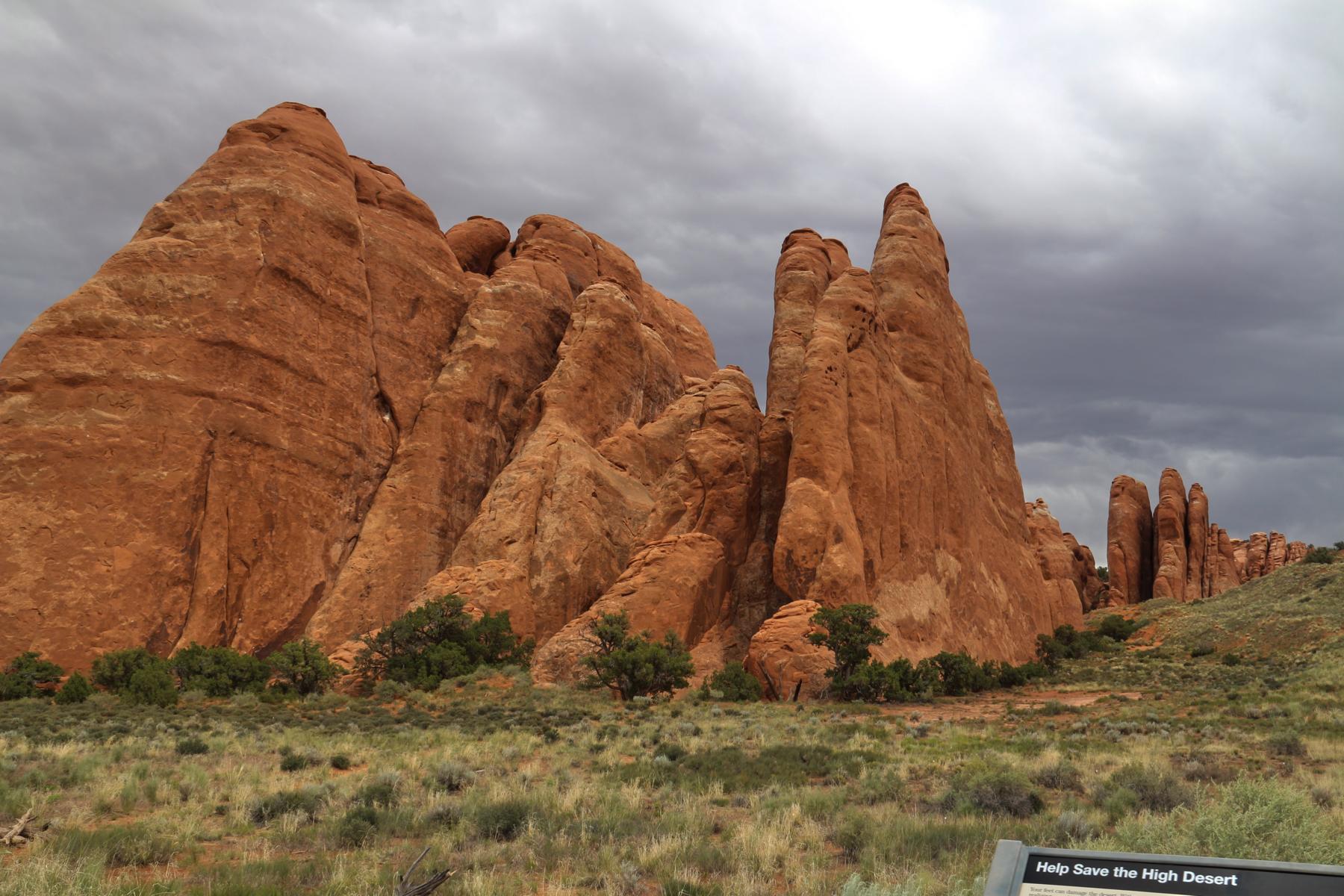 Hier oben hat man eine geniale Weitsicht auf den Arches National Park und die La Sal Mountains, die können wir aber momentan wirklich nicht genießen. Zum einen weht plötzlich ein eisiger Wind und zum anderen... WAS ZUR HÖLLE IST DA AM HIMMEL LOS?!?! Im nachhinein faszinierende Bilder, vor Ort... Uncool. Sehr uncool!
