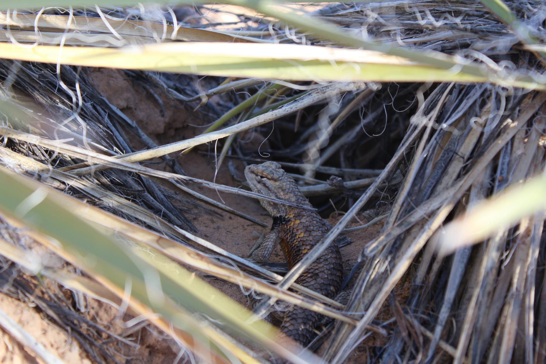 Meine Speicherkarte ist voll und ich muss mir kurz bei meiner Mutter eine Neue abholen. Dabei sehe ich eine recht große Echse im Busch direkt neben unserem Tisch verschwinden. Bei näherer Betrachtung sind es sogar zwei, aber die verstecken sich wirklich gut und scheinen keinerlei Interesse daran zu haben, sich in voller Pracht zu zeigen. Ein Bild von einer der Echsen gelingt mir dann aber doch: