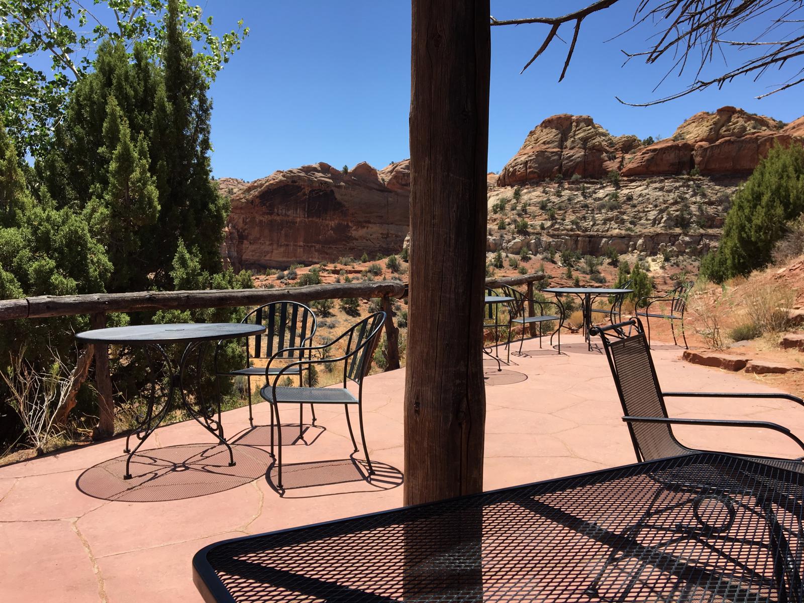 Der Rückweg über die Hole in the Rock Road bis zum Devils Garden zieht sich extrem und irgendwie habe ich das Gefühl, das wir heute Mittag nicht so weit gefahren sind, aber es täuscht. Irgendwann erreichen wir den Abzweig dann doch noch und sind dann auch direkt schon am Parkplatz... Hier ist kaum was los und wir suchen uns einen der Picknickplätze aus, der nicht in der prallen Sonne liegt.