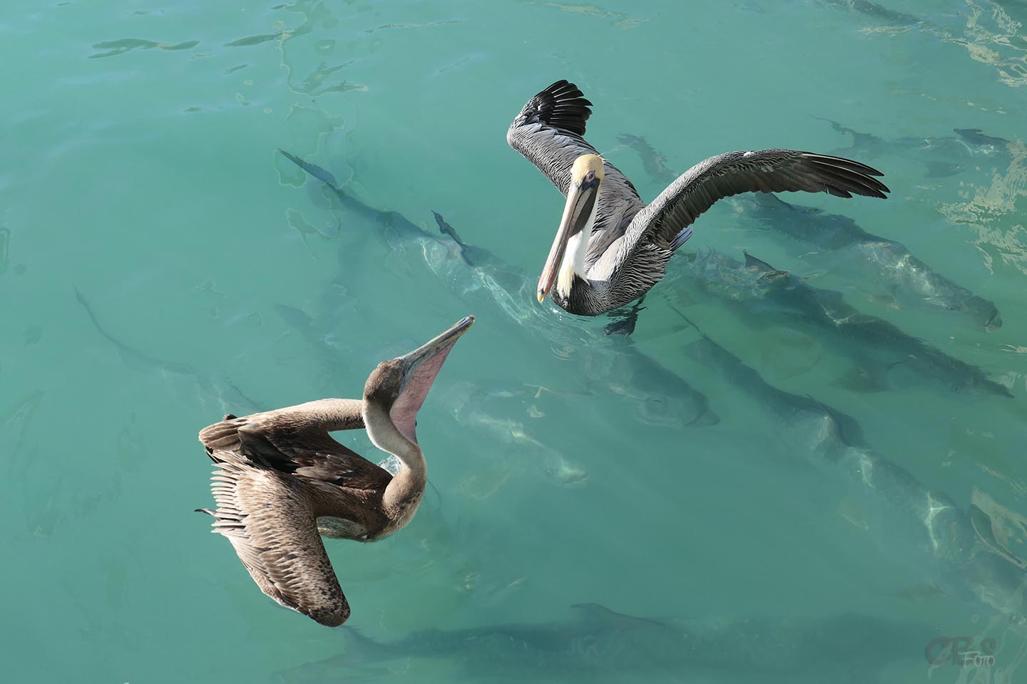 Hier im Osten gibt es übrigens auch einen Highway mit der Nummer eins und genau auf dem geht es über die Inseln, unser heutiges Ziel ist Key West. Unseren ersten Stopp legen wir „Robbie´s“ ein, wir besorgen uns ein Eimerchen mit Fisch und füttern die Tarpune, oder die Pelikane welche sich darauf spezialisiert haben die Happen schon in der Luft wegzuschnappen. Uns ist es egal wer hier das meiste abbekommt...