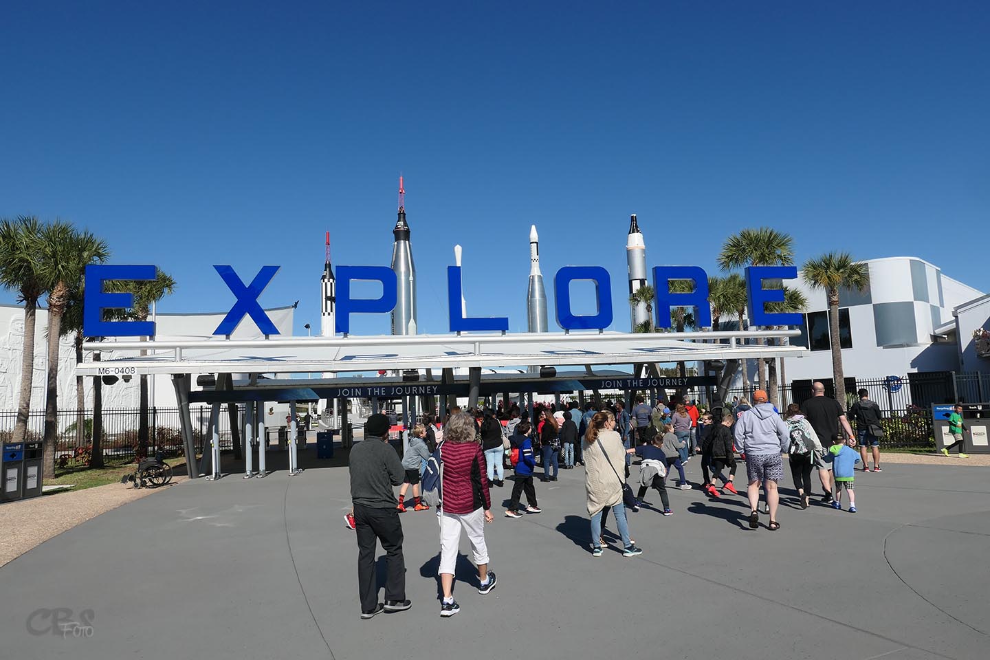 Frühstück gibt es im Hotel und dann geht es ins naheliegende Kennedy SpaceCenter. Der riesige Parkplatz vor dem KSC wirkt durch die wenigen Autos am frühen Morgen gleich noch viel größer...